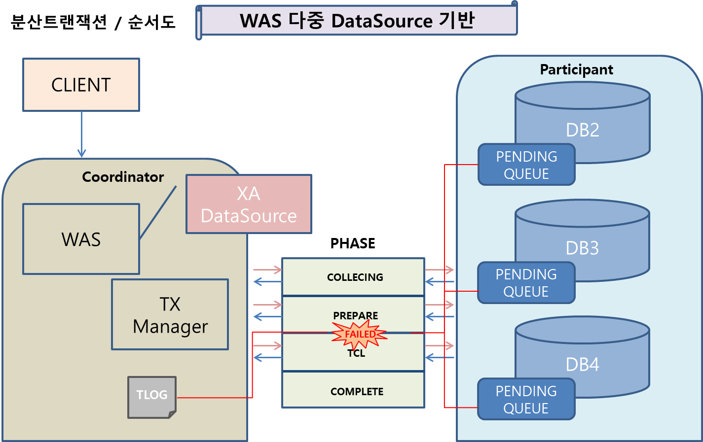 - Coordinator는 WAS(TX Manager)가 담당한다.